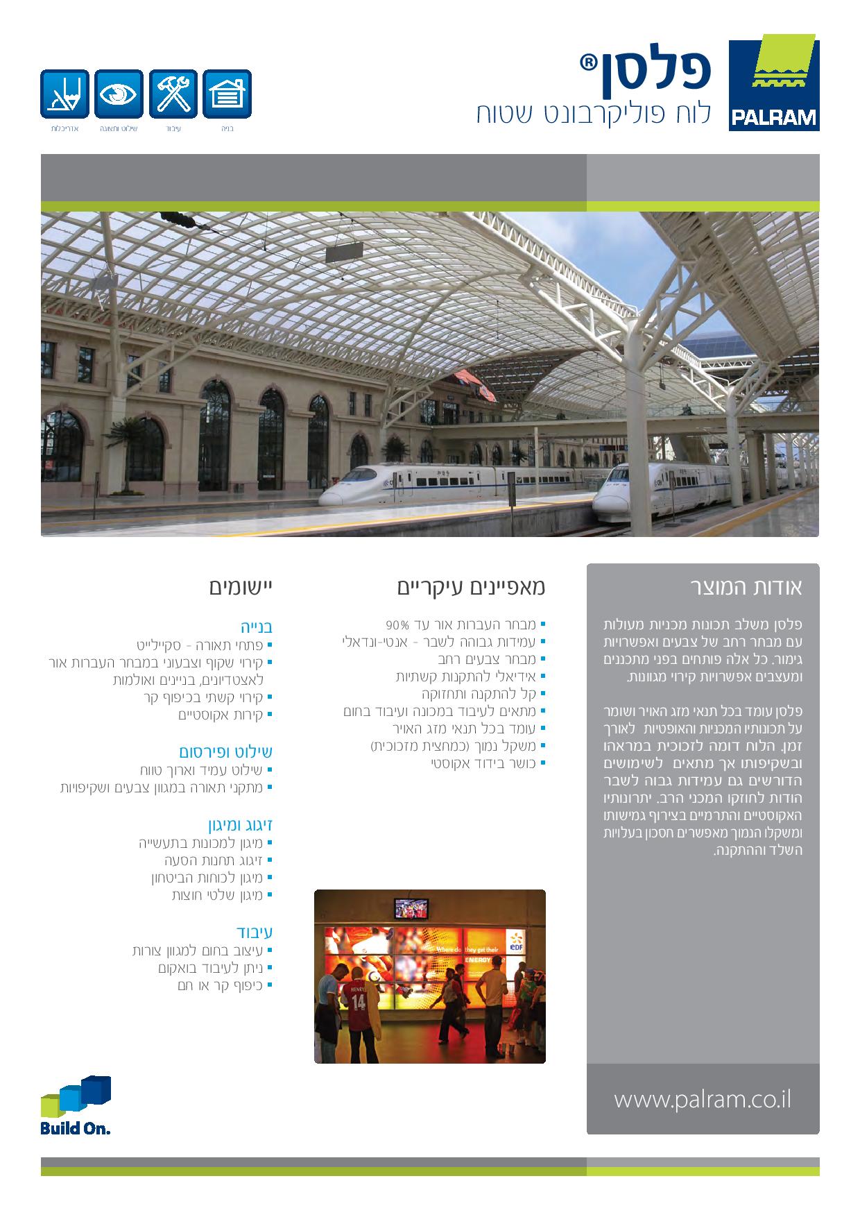 - הפוליקרבונט שלנו מיוצר על ידי חברת פלרם הישראלית המובילה בעולם בייצור לוחות תרמופלסטיים ועומדת בכל התקנים הבינלאומיים המחמירים.